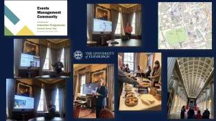 In response to feedback from EMC members, another brilliant Induction introduced new members to the amazing venues in the Central Campus. Following the success of the first Events Management Community (EMC) Induction earlier this year, a second induction was held on 23 October. In May, the induction introduced members to the venues on offer in Pollock Halls Estate. The October induction focussed on the venues within the Central Campus and Old College and introduced the hotels and apartments available through the University Hospitality & Events Collection.The event was kickstarted by Dawn Dodd and Catherine Hetherington from information Services, introducing the EMC, its history, and how current and new members can use its benefits to the fullest. A series of talks followed, with Amanda Ferguson detailing the University’s Hospitality Collection, before introducing Gordon Dow and Sarah Jane Smith. Gordon demonstrated the event spaces in the Central Area, from McEwan Hall, the Playfair Library, and various venues across George Square, with Sarah rounding off the talks with an insight into the hotels, including The Scott, The Scholar, and the KM Hotel and Apartments. All these spaces can be found on the Old Town Campus University of Edinburgh Conferences and Events Venue Collection.Catherine Hetherington, Collaboration Services Team Manager, said, ‘We’re so fortunate to have such a variety of stunning venues within the University estate.’Attendees enjoyed a delicious lunch (especially the salted caramel brownies) provided by the University of Edinburgh Hospitality Collection. This gave new members a chance to network with and learn from each other’s events management experience.Following this delightful lunch, new members were given a tour by Gordon from the Raeburn Room (Old College) around the Central Area, including the fabulous Playfair Library. Building on the variety of spaces offered in Pollock Halls, newer members of the EMC were shown more venues to hold events, allowing event planners to use whatever space fits their type of event. ‘Today’s session was a great overview of the community journey so far and the amazing event venues that staff can use for anything…If you are a UoE staff member and don’t know about the Events Management Community. Get to know! It could be your lifeline to feeling more supported and having an elite team of events professionals on speed dial to help you.’ Heather MacBain Head of Marketing Watch this space and the IS News Page for future EMC events, including the first EMC conference, Greener Gatherings, which will be held in January 2025. What to know more about the EMC? Please contact Dawn Dodd (Dawn.Dodd@ed.ac.uk) or Catherine Hetherington (Catherine.Hetherington@ed.ac.uk). Publication date 31 Oct, 2024