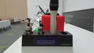 Guidance on using microphones in teaching rooms Microphones should always be worn when available, regardless of any perceived need.This includes all of those who present, including guest lecturers and students, and contributions from members of the audience.Speaking 'loudly & clearly' is not a substitute for the microphone.All lecture rooms are equipped with at least one microphone which is maintained by IS staff and locally-based support staff.Where there is a single microphone, it should be passed to anyone who wishes to contribute (e.g. if an audience member wishes to ask a question).Catchbox microphones (in padded boxes), which can be thrown/passed safely in a large spaces, are available in some spaces.Use of the microphone is required if lecture recording is taking place.How to use lapel/handheld/lanyard microphonesMost rooms come equipped with at least one wireless lapel microphone. Larger spaces will have multiple microphones, for example two lapel microphones and one handheld microphone. Some rooms also now have lanyard microphones which can be used as an alternative to a lapel microphone.To turn the microphones on simply lift them out the cradle and they will turn on automatically. These types of microphone come with a status light - yellow indicates the microphone is muted and green indicates the microphone is live. The mute switch for the lapel microphone is located on the top of the pack and the switch for the handheld is located on the front. Slide the button left and right on the lapel, or up and down on the handheld. If using the lapel microphone, place the unit in your pocket or attach to your waist/belt using the clip on the back. Position the microphone roughly six to eight inches from your mouth and attach it to your clothing using the clip. Where available, lanyard microphones can be used as an alternative solution, especially if attaching a lapel microphone to your clothing isn't practical. Simply use the attached lanyard to wear the microphone around your neck.The microphones work independently of the volume control found on the button or touch screen panel. Microphone levels have been set by technicians for optimum level based on the room size and users are unable alter this. When you are finished with the microphone, please ensure it is placed correctly back in the cradle, so the charging slot status lights up. The microphones must be used at all times to be heard in the room, in lecture recordings and in classes using hybrid teaching methods. Please note University of Edinburgh policy requires microphones to be worn regardless of any perceived need. How to use catchbox microphonesThe catchbox is a microphone that promotes collaborative learning by engaging audience members in the discussion. To turn on, simply lift the catch box from the charging plate and wait a moment. The catchbox microphone is robust and can be passed to audience members in the room, which enables them to be heard both in the teaching space and on the lecture recording. When finished with the catchbox, place back on the wireless charging plate. Lapel and handheld microphones Lanyard microphone A catchbox microphone Useful resourcesAssistive Listening TechnologiesRelated policyLecture Recording Policy [PDF]Virtual classroom PolicyAccessibility and Inclusive Learning Policy [PDF] This article was published on 2024-10-08